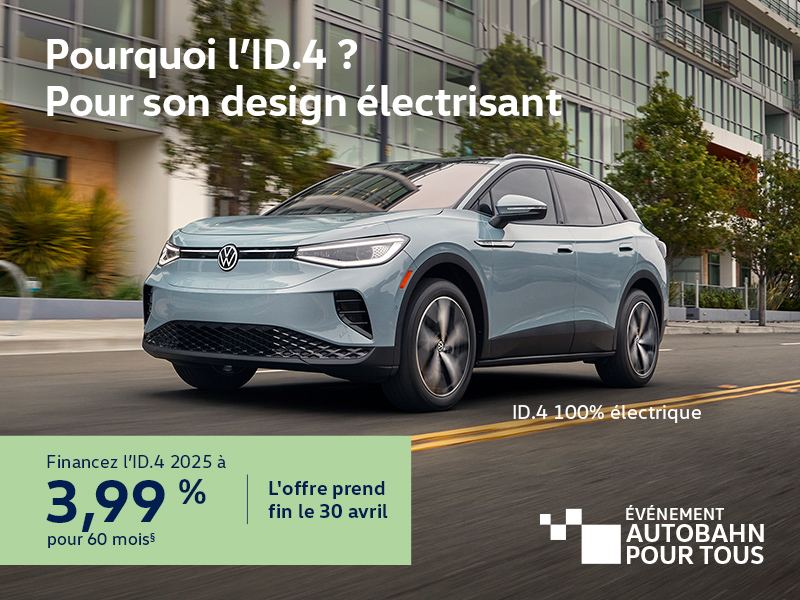 * Prix calculé à partir du prix de détail suggéré du fabricant. Frais de transport et préparation inclus, taxes en sus.Frais d'administration de 499$,taxe sur les pneus de 24.50$ inclus. Le rabais et le prix à l'achat affichés peuvent varier selon que le véhicule soit loué, financé ou payé comptant. Veuillez noter que les rabais Roulez Vert du gouvernement sont inclus si applicables et que les montants n'incluent pas les taxes. Les prix Jetta et GLI incluent les frais de transport et de préparation de 1,950$. Les prix GTI et Golf R incluent les frais de transport et de préparation de 1,950$. Les prix de Taos, Tiguan et ID.4 incluent les frais de transport et de préparation de 2,100$. Les prix Atlas et Atlas Cross Sport incluent les frais de transport et de préparation de 2,150$. Bien que tous les efforts raisonnables soient faits pour assurer l'exactitude de ces informations, nous ne sommes pas responsables des erreurs ou omissions contenues sur ces pages. Les prix, paiements et taux sont sujets à des changements sans préavis, s'il vous plaît vérifiez toutes les informations et les prix avec un représentant des ventes ou demandez en ligne.